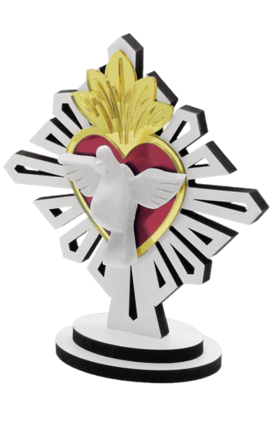 ADORNO ESPIRITO SANTO COM SAGRADO CORAÇÃO DE JESUS DE MESA